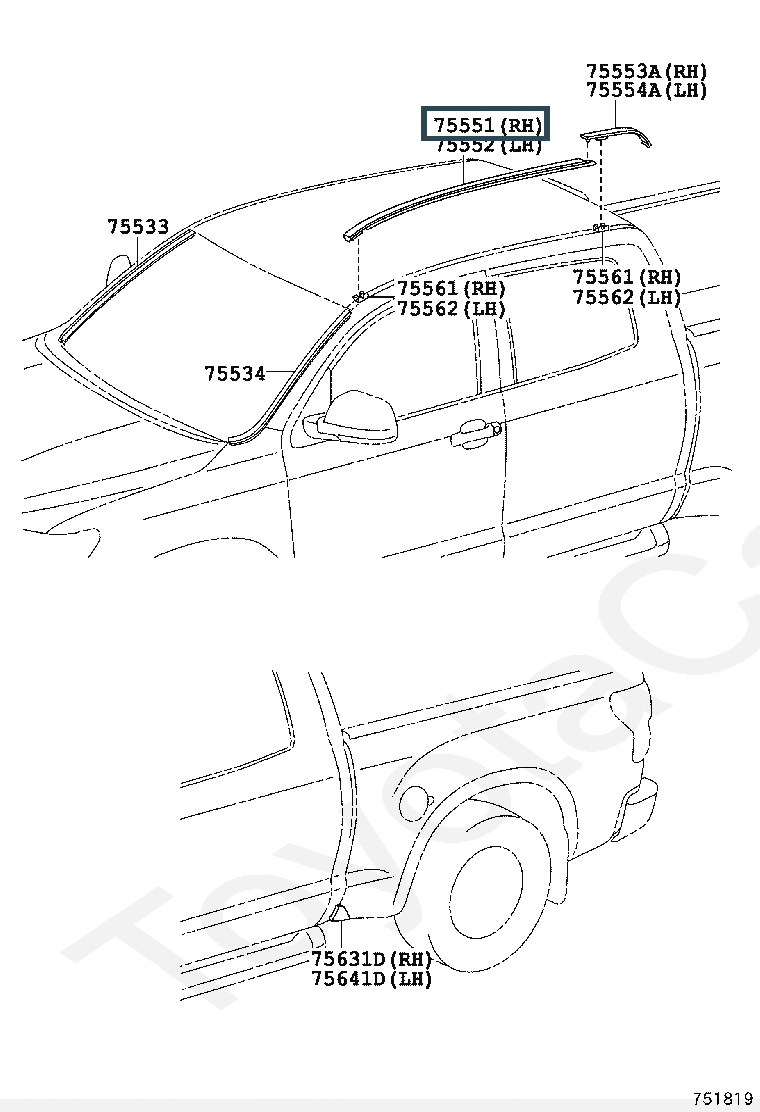 75551-0C060, MOULDING, ROOF DRIP SIDE FINISH, RH