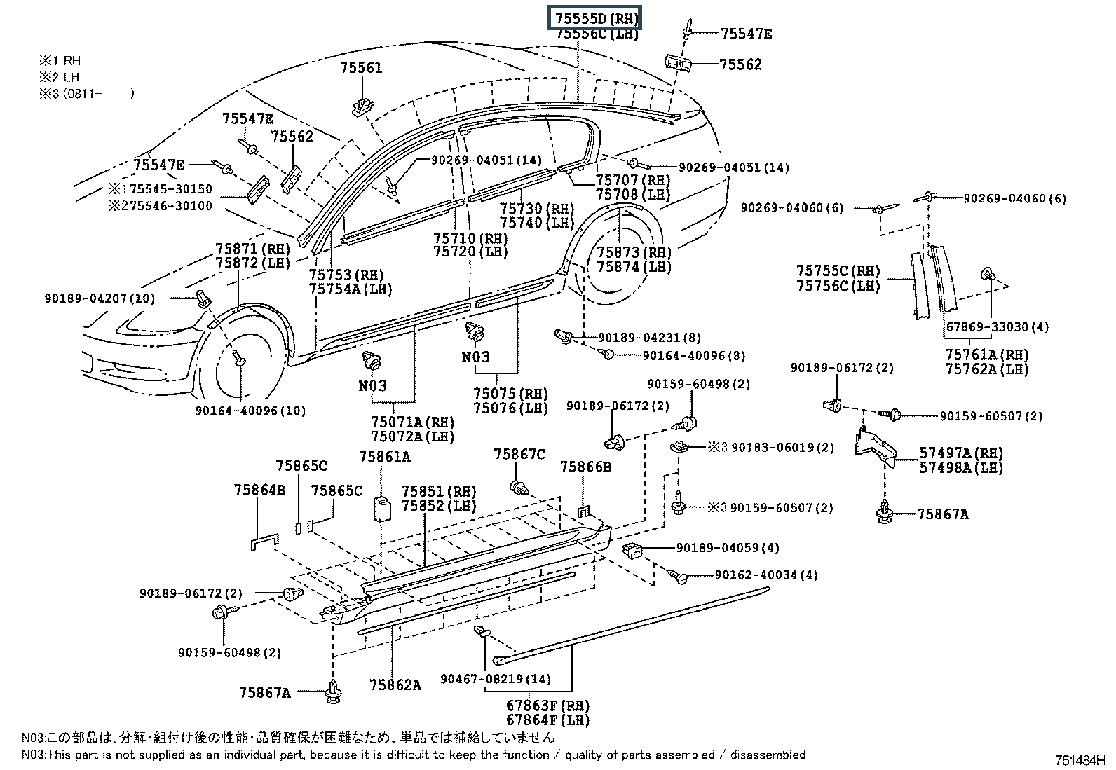 75555-30110-A2, MOULDING, ROOF DRIP SIDE FINISH, CENTER RH
