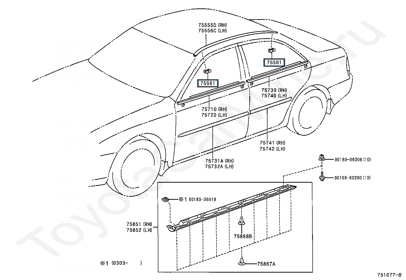 75561-YC020, CLIP, ROOF DRIP SIDE FINISH MOULDING, NO.1