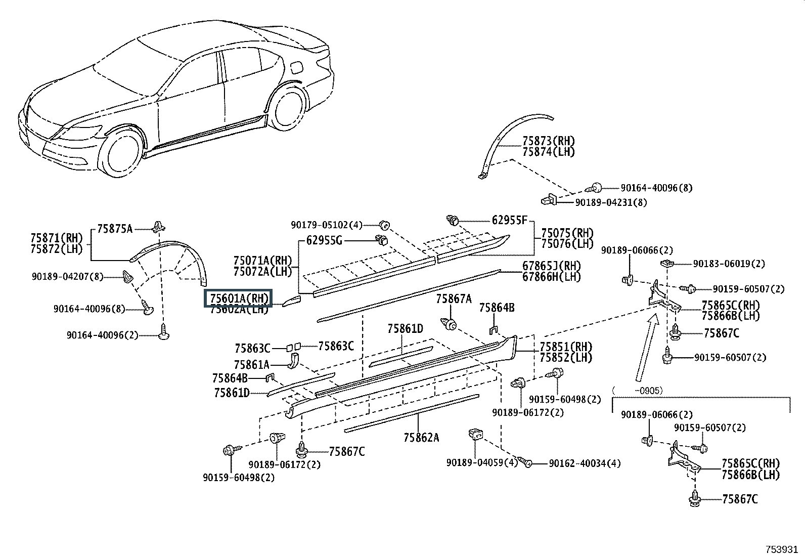 75601-50060-C0, MOULDING SUB-ASSY, FRONT FENDER, RH