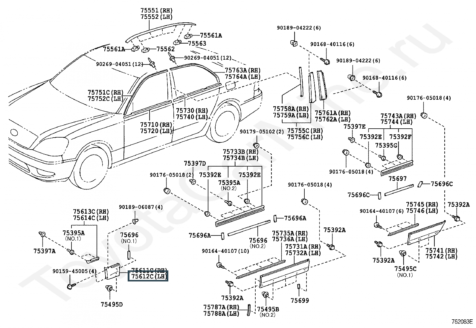 75612-50040-C0, MOULDING, FRONT FENDER, OUTSIDE LH