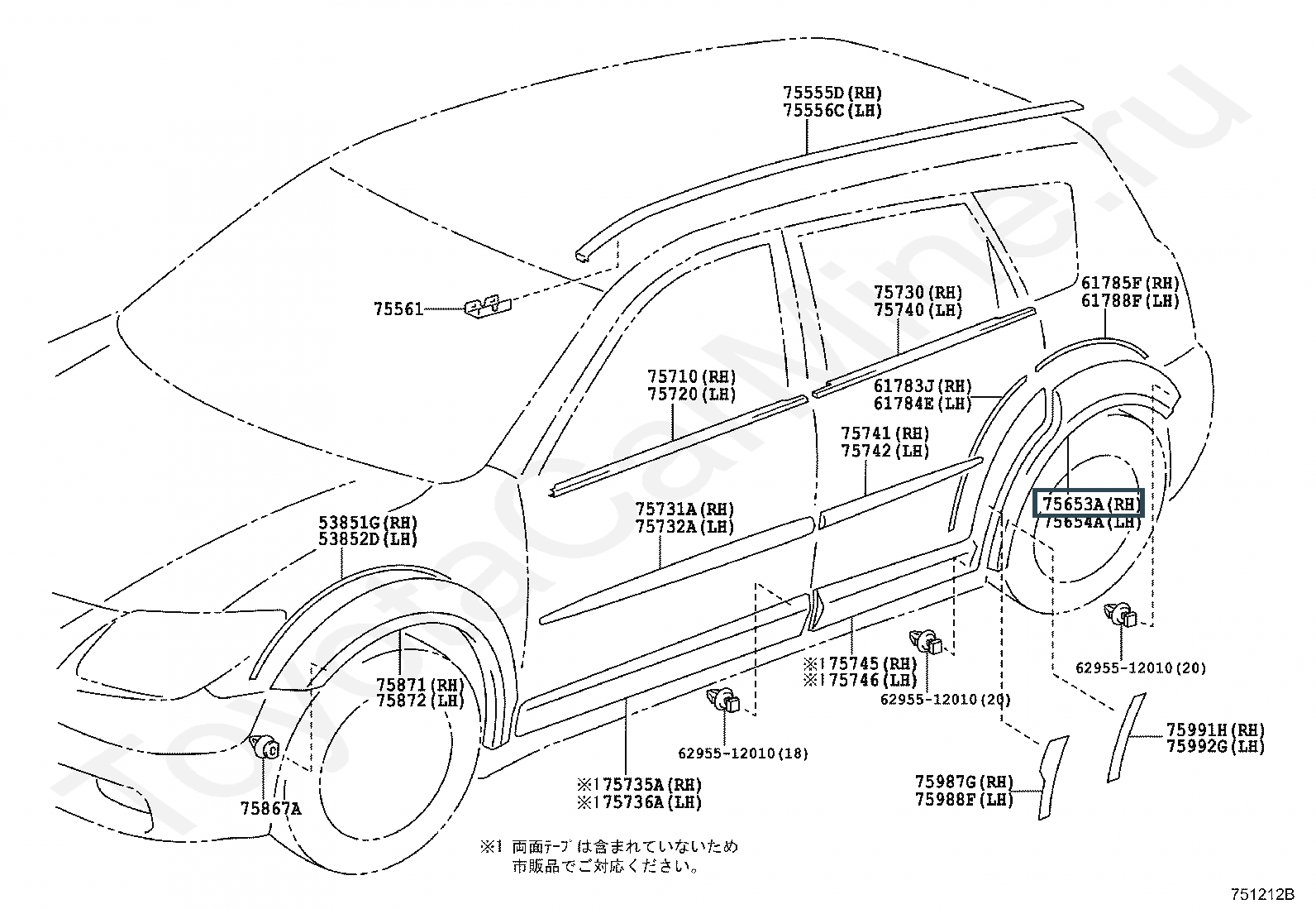 75653-01020-B0, MOULDING, QUARTER, OUTSIDE REAR RH