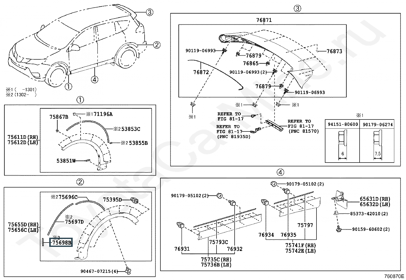 75698-42040, PAD, BODY OUTSIDE MOULDING, NO.3