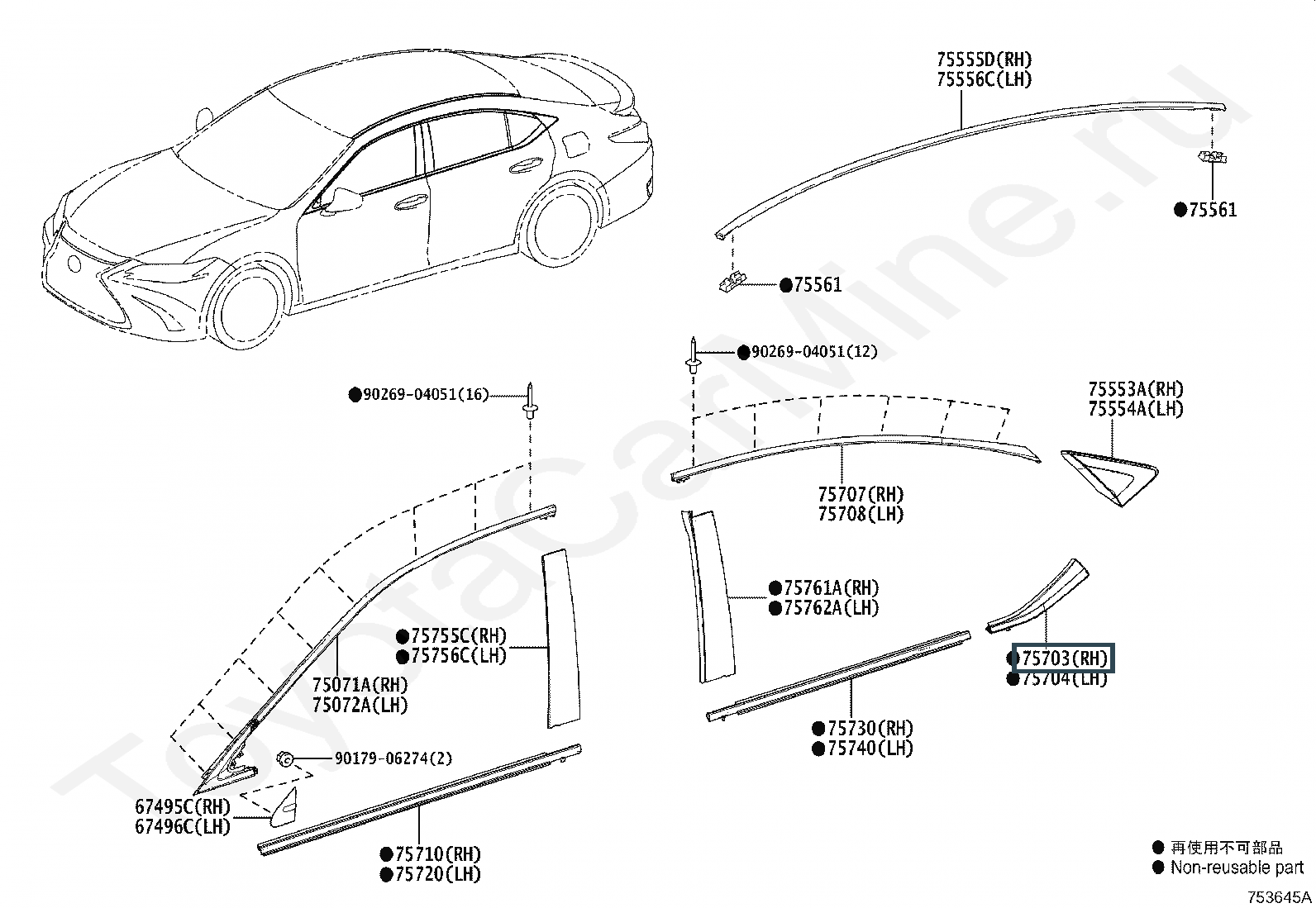 75703-33040, MOULDING SUB-ASSY, REAR DOOR BELT, RH
