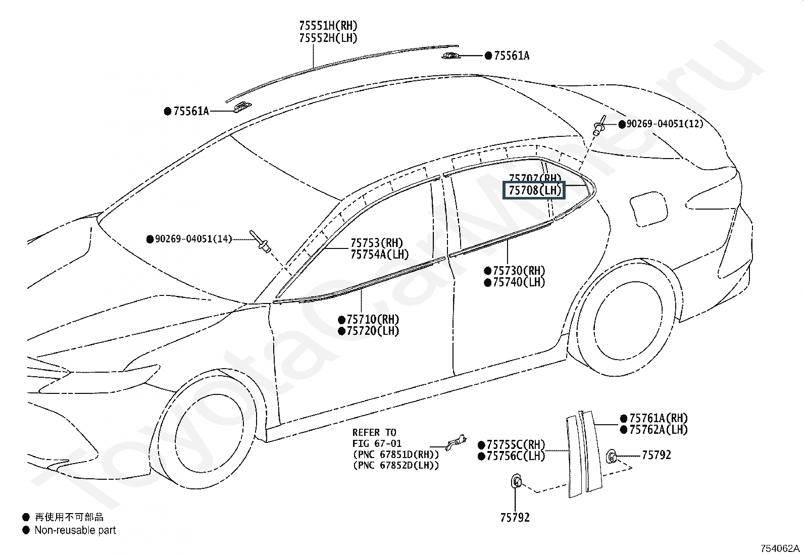 75708-33070, MOULDING SUB-ASSY, REAR DOOR WINDOW FRAME, LH