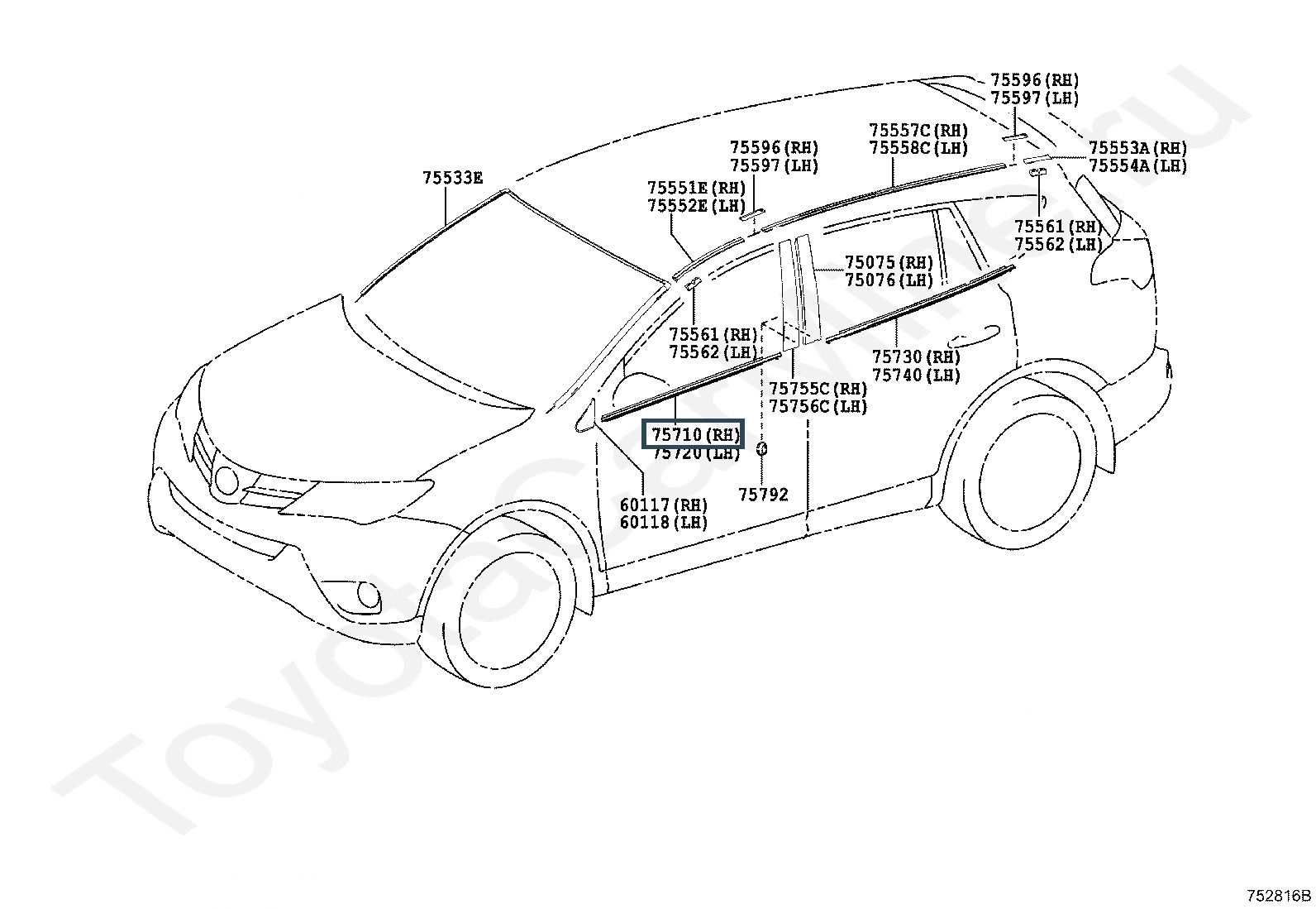 75710-0R030, MOULDING ASSY, FRONT DOOR BELT, RH