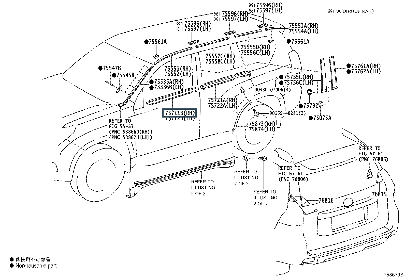75711-60090, MOULDING, FRONT DOOR BELT, RH