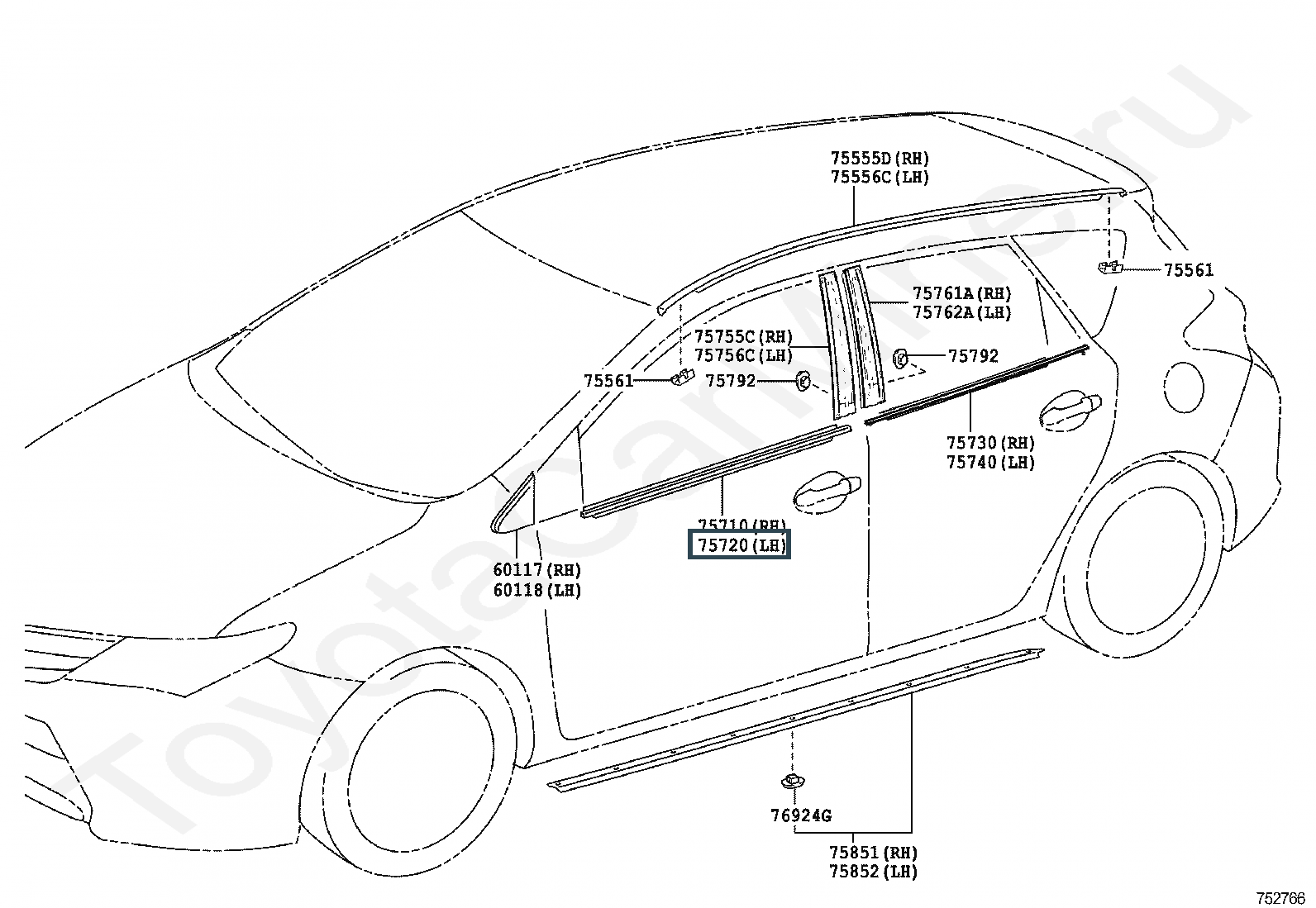 75720-12890, MOULDING ASSY, FRONT DOOR BELT, LH