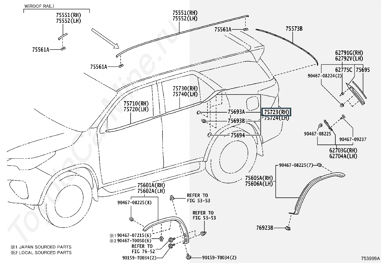 75723-0K020, MOULDING, REAR DOOR BELT, REAR RH