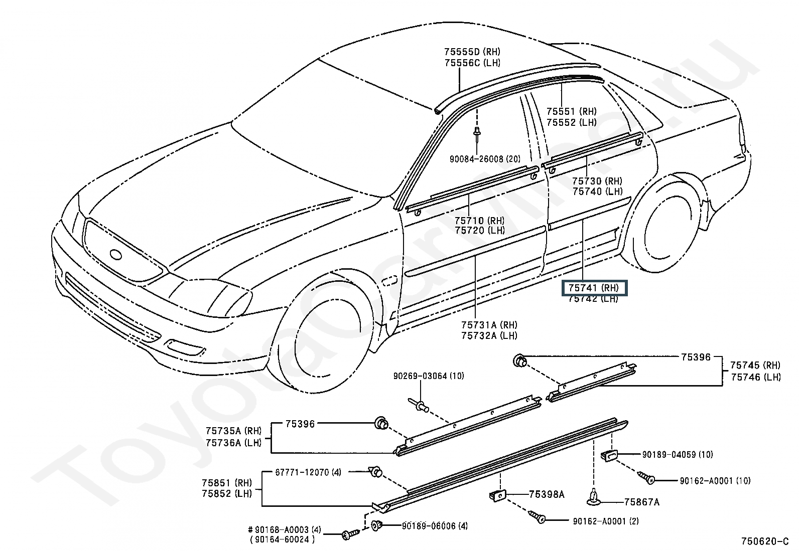 75741-AC020-B0, MOULDING, REAR DOOR, OUTSIDE RH