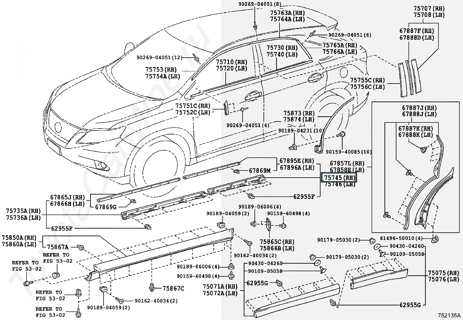 75745-48020, Молдинг правый нижний задней двери