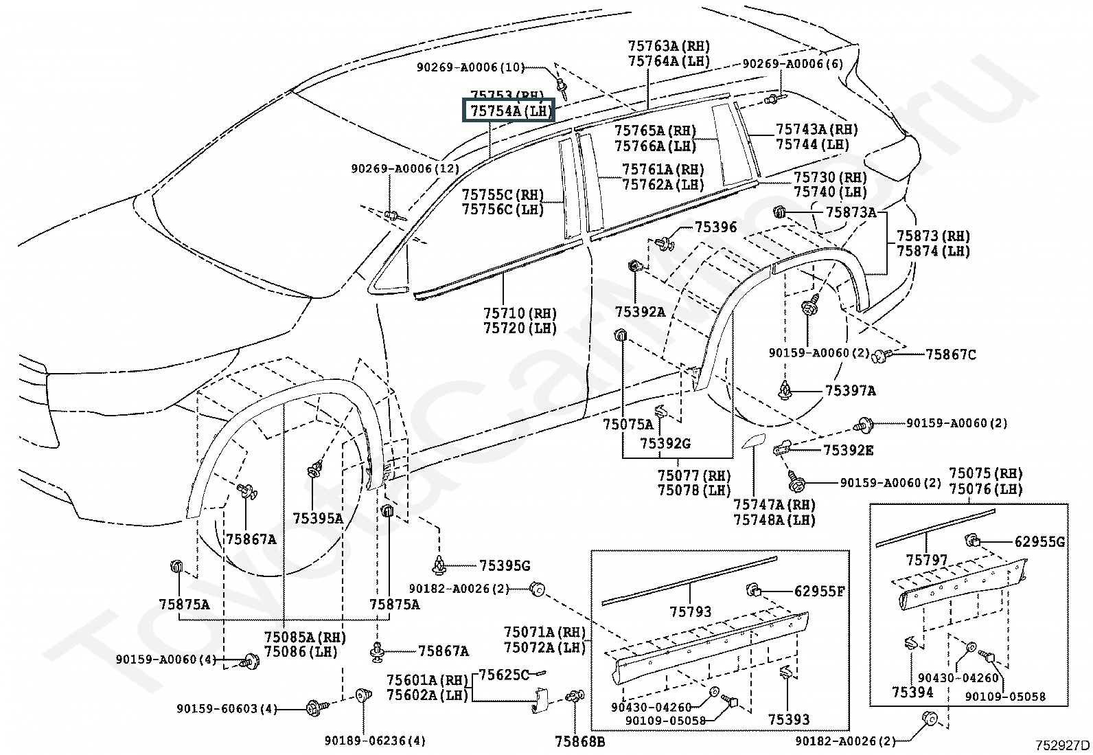 75754-0E020, MOULDING, FRONT DOOR WINDOW FRAME, UPPER LH