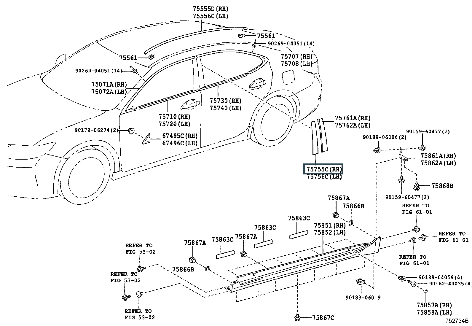 75755-33070, MOULDING, FRONT DOOR WINDOW FRAME, REAR RH