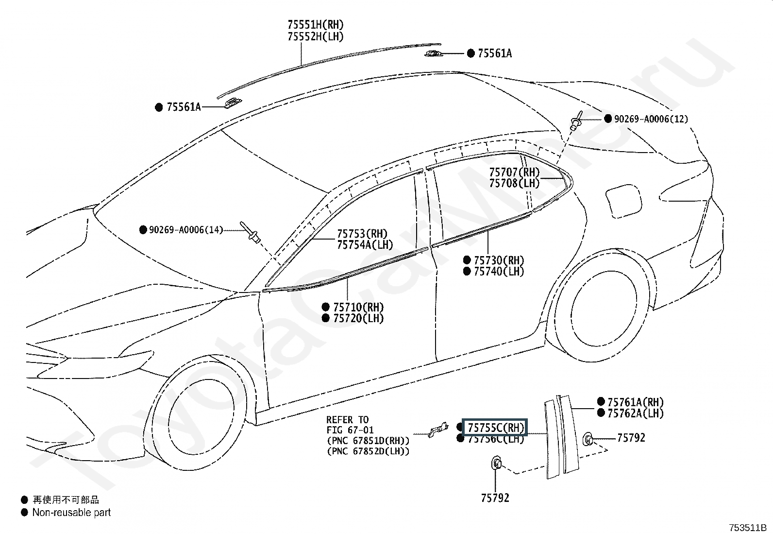 75755-33100, Молдинг правый