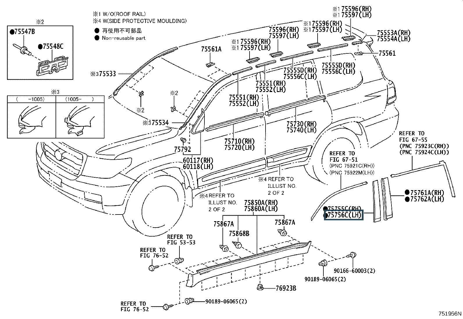 75756-60060, MOULDING, FRONT DOOR WINDOW FRAME, REAR LH