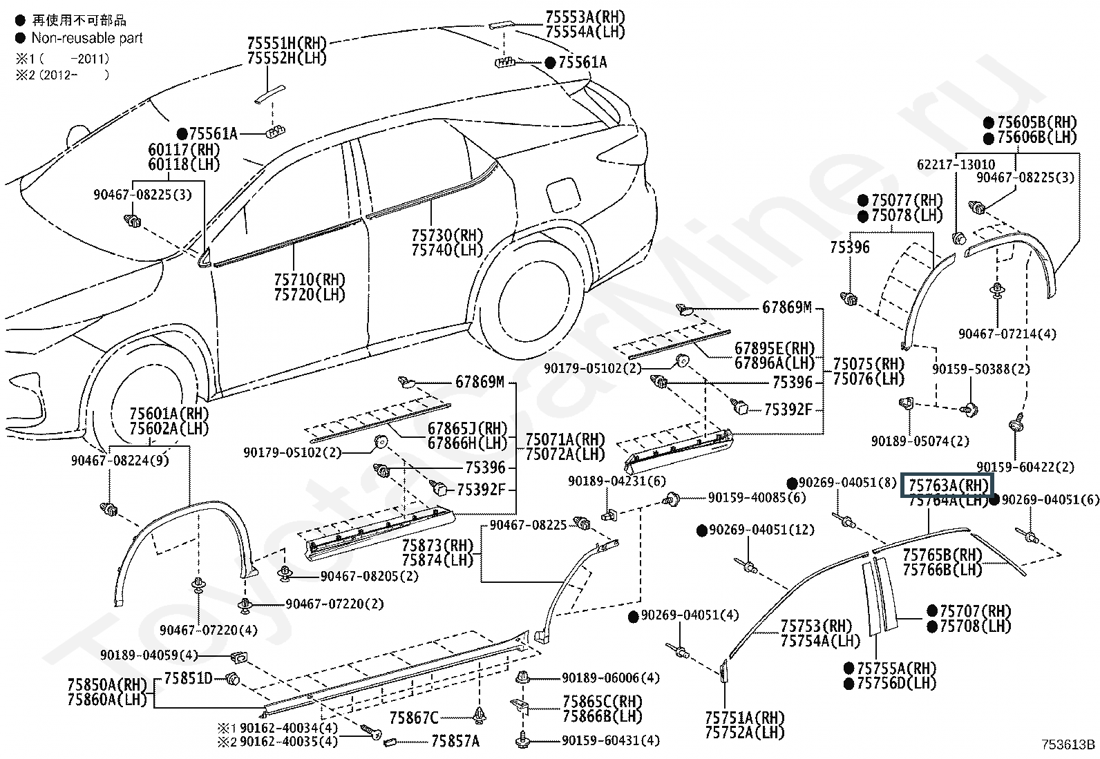 75763-48030, MOULDING, REAR DOOR WINDOW FRAME, UPPER RH