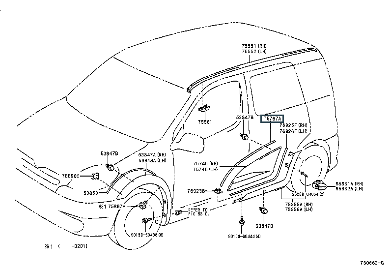 75767-52010-B0, PAD, REAR DOOR MOULDING, NO.1