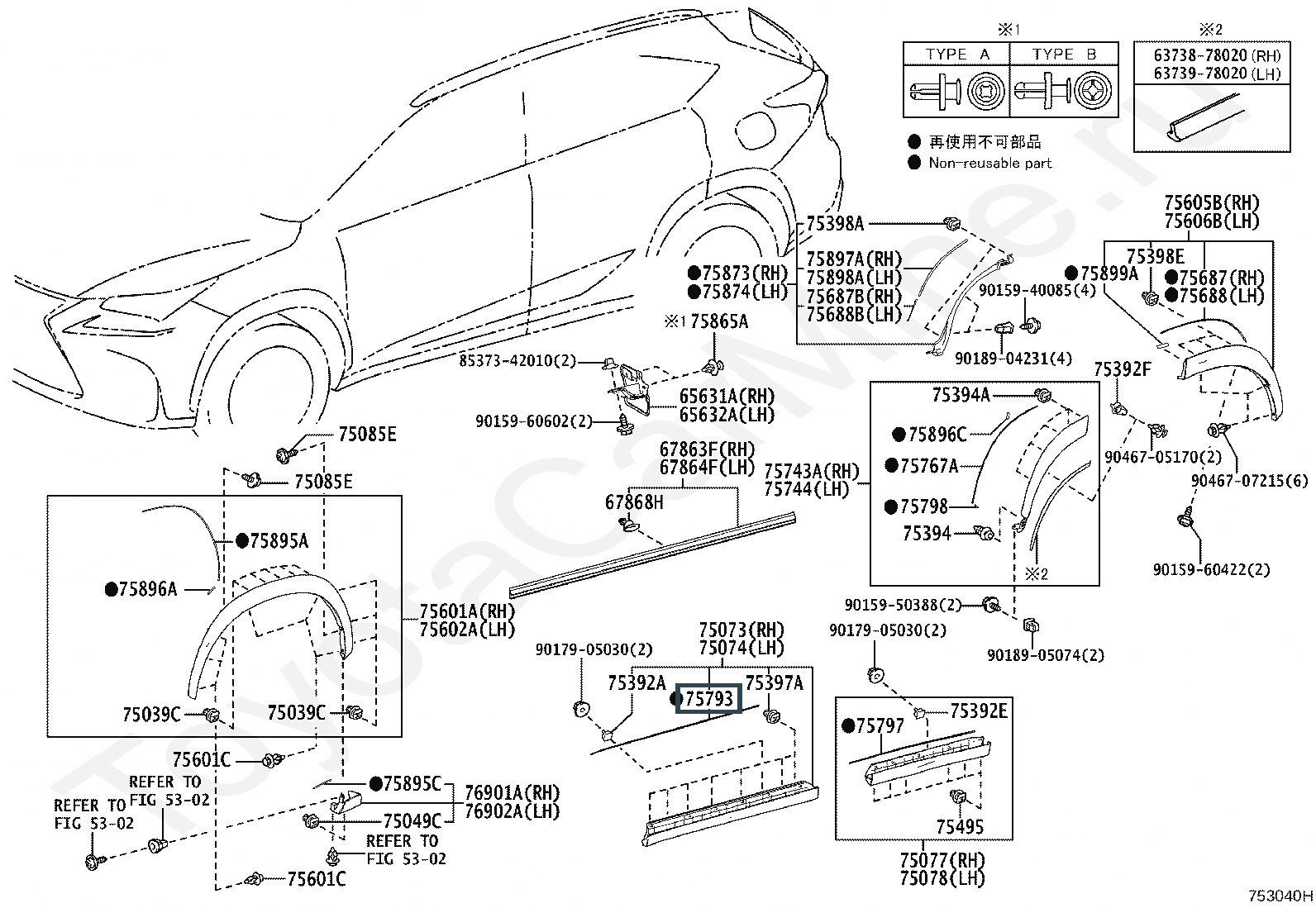 75793-78010, PAD, FRONT DOOR OUTSIDE MOULDING, UPPER