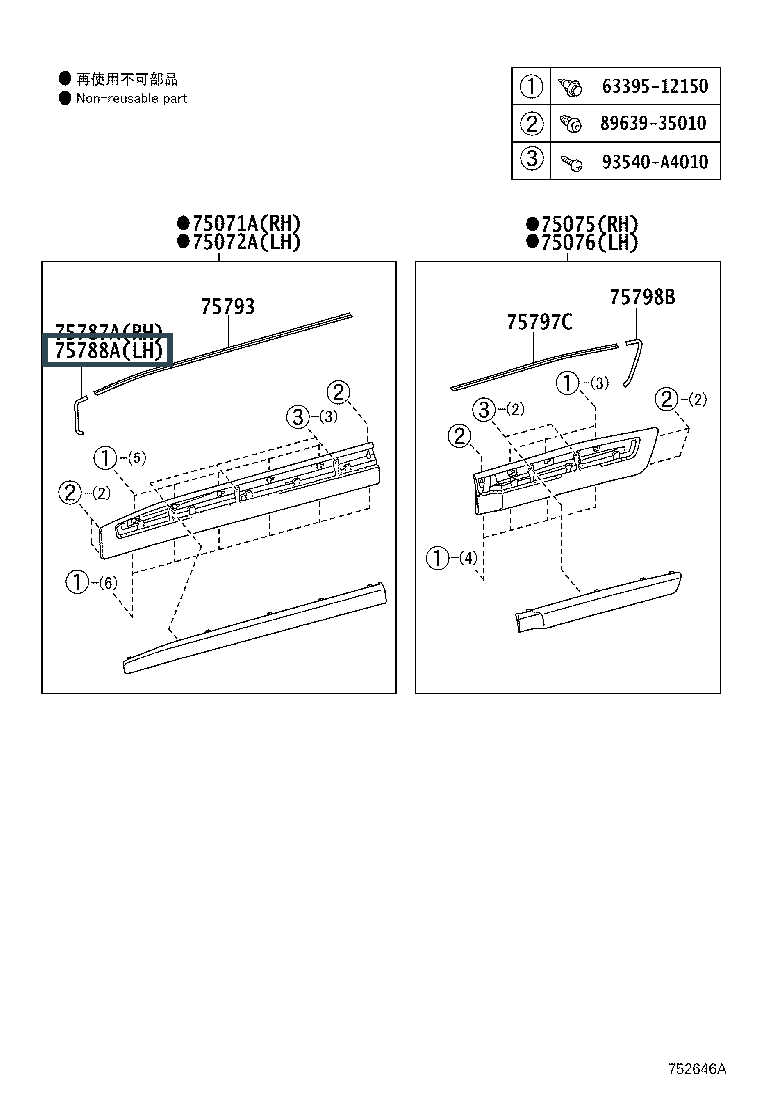 75794-60090, PAD, FRONT DOOR OUTSIDE MOULDING, LH