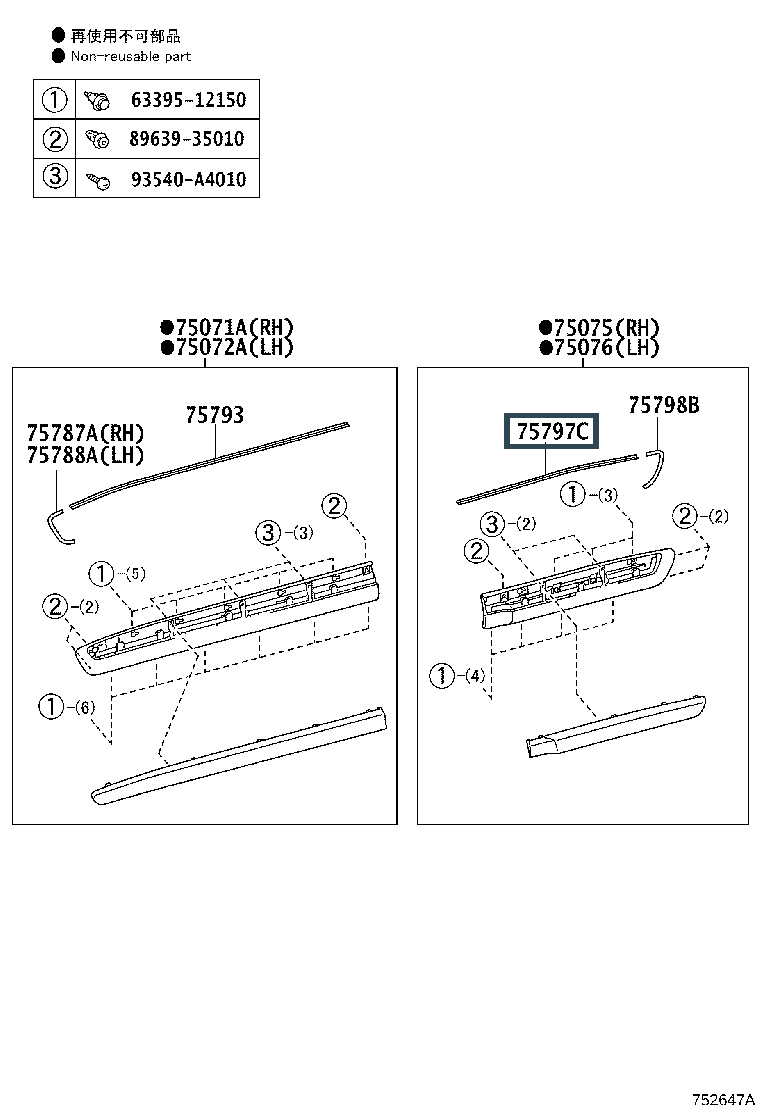 75797-60010, PAD, REAR DOOR OUTSIDE MOULDING, UPPER