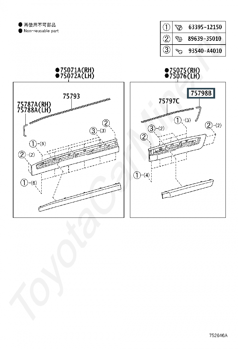 75798-60060, PAD, REAR DOOR OUTSIDE MOULDING, REAR