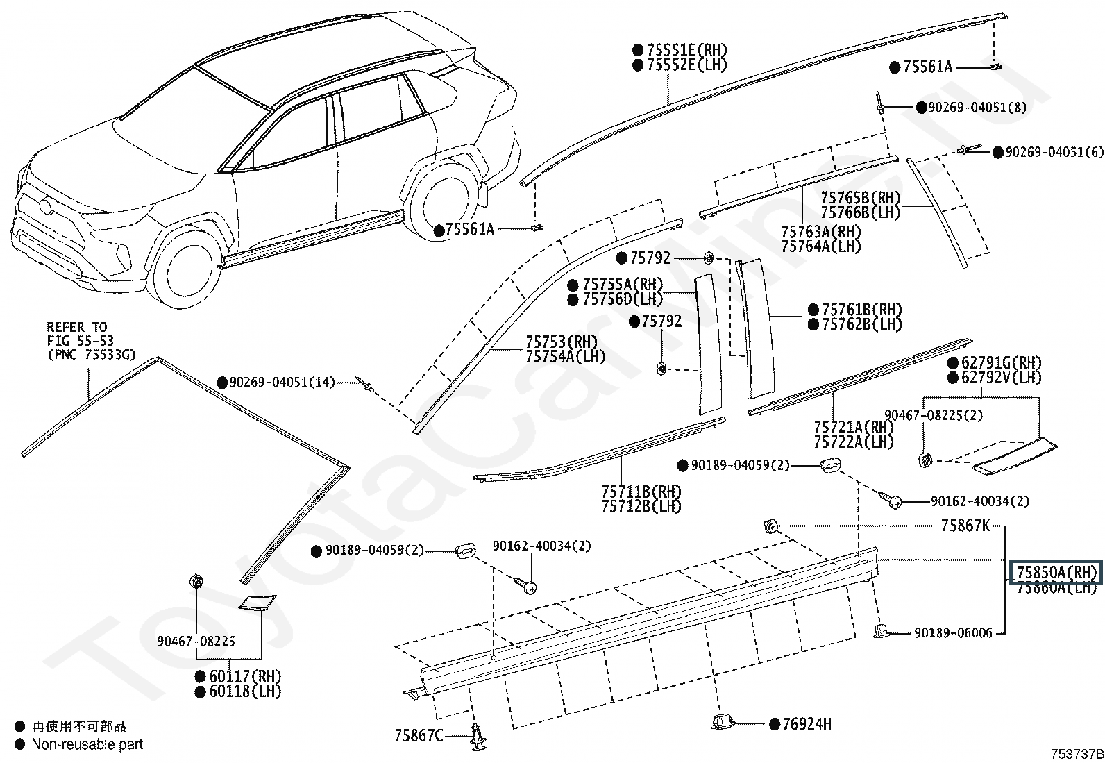 75850-42030, MOULDING ASSY, BODY ROCKER PANEL, RH