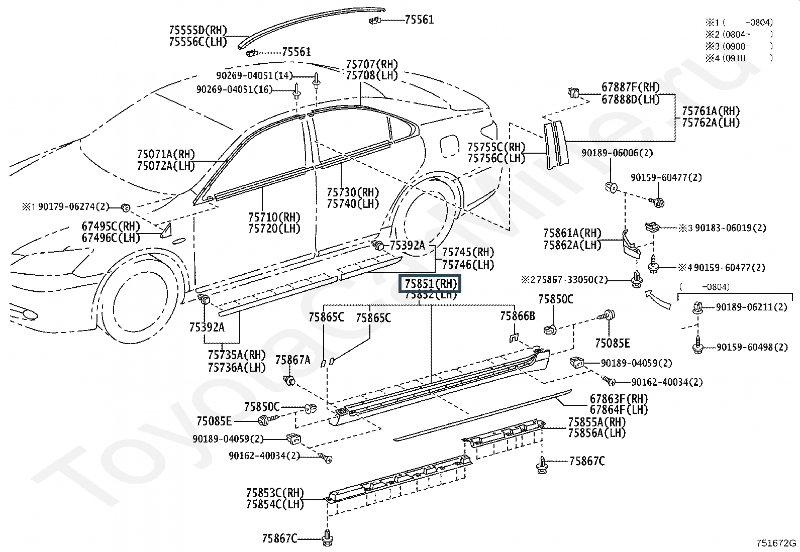 75851-33905-C1, MOULDING, ROCKER PANEL, RH