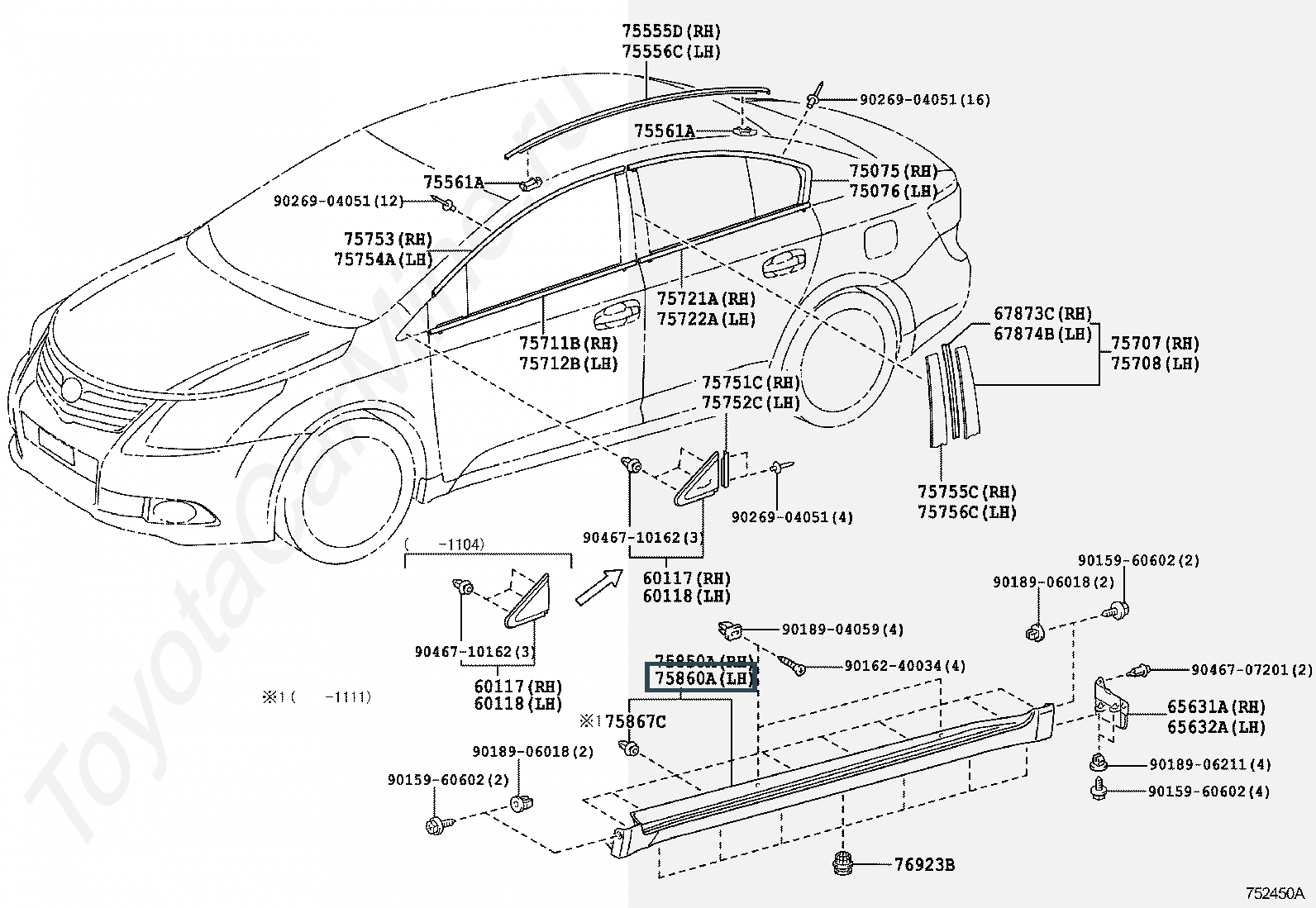 75860-05900, MOULDING ASSY, BODY ROCKER PANEL, LH