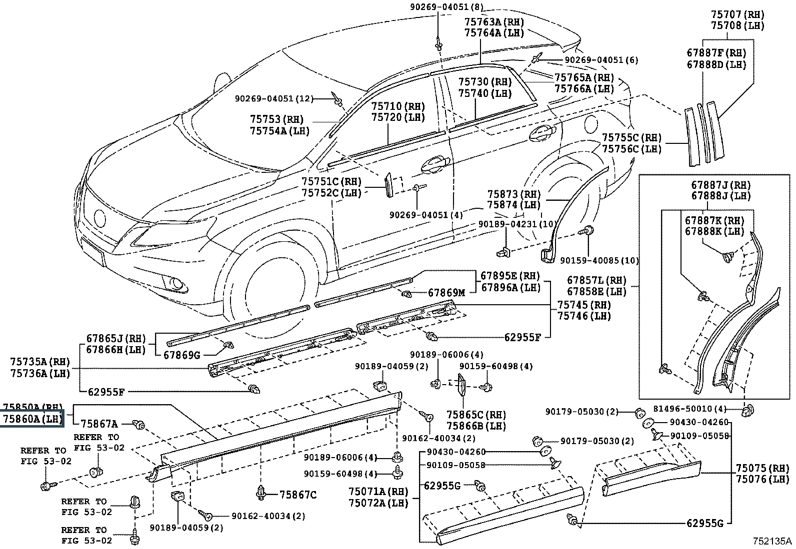75860-48020, MOULDING ASSY, BODY ROCKER PANEL, LH