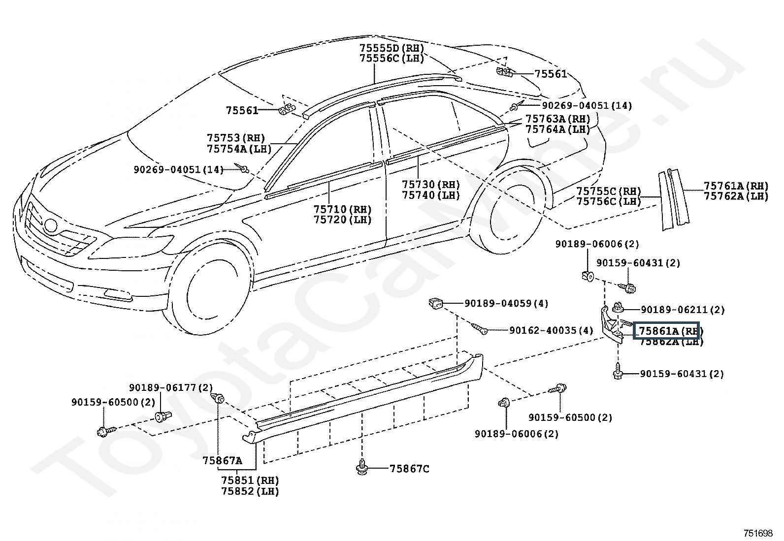 75861-33011, PROTECTOR, ROCKER PANEL MOULDING, NO.1