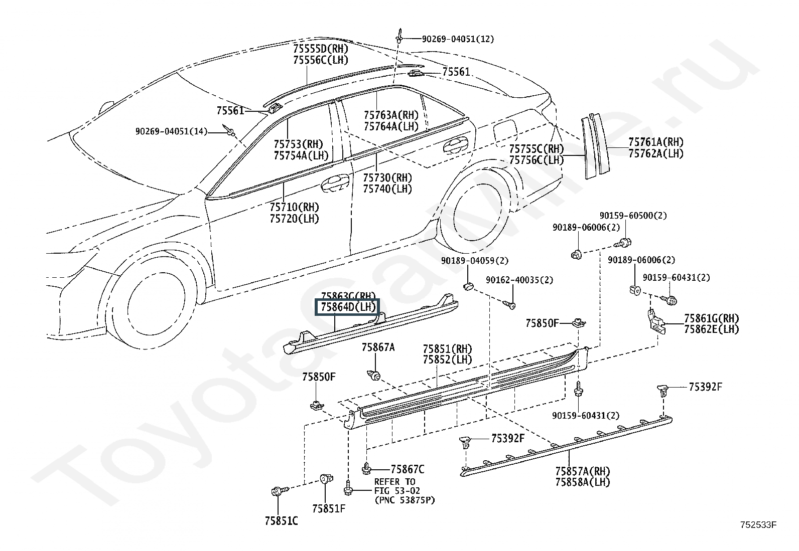 75864-33020, PROTECTOR, ROCKER PANEL MOULDING, LH