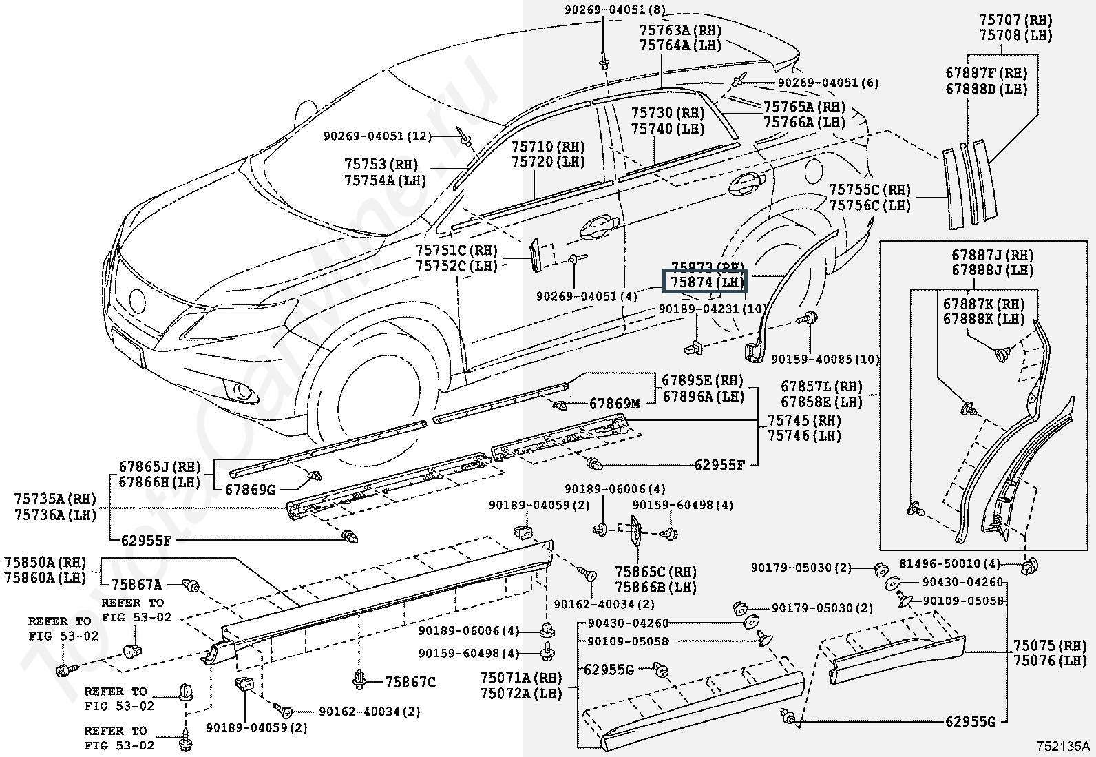 75874-48010, MOULDING, QUARTER PANEL WHEEL OPENING, LH