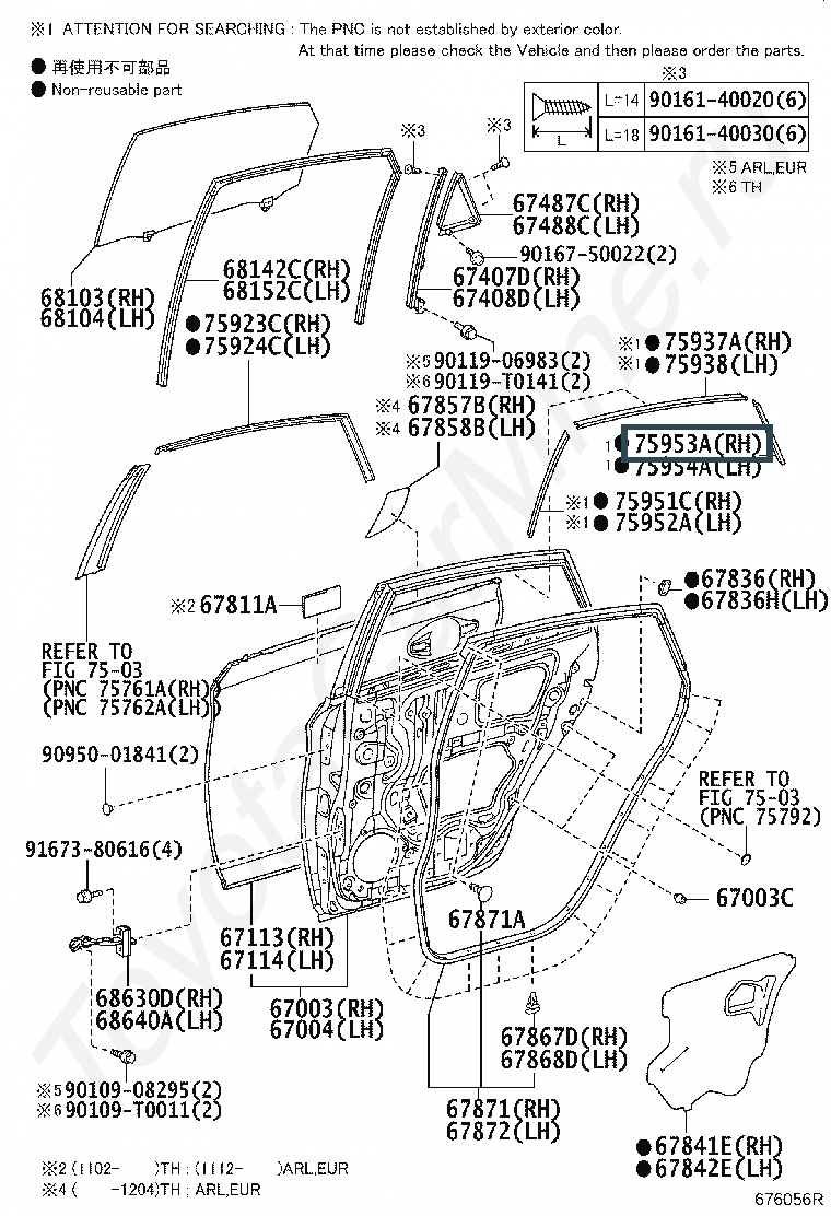 75979-47020, TAPE, BLACK OUT, INNER REAR RH