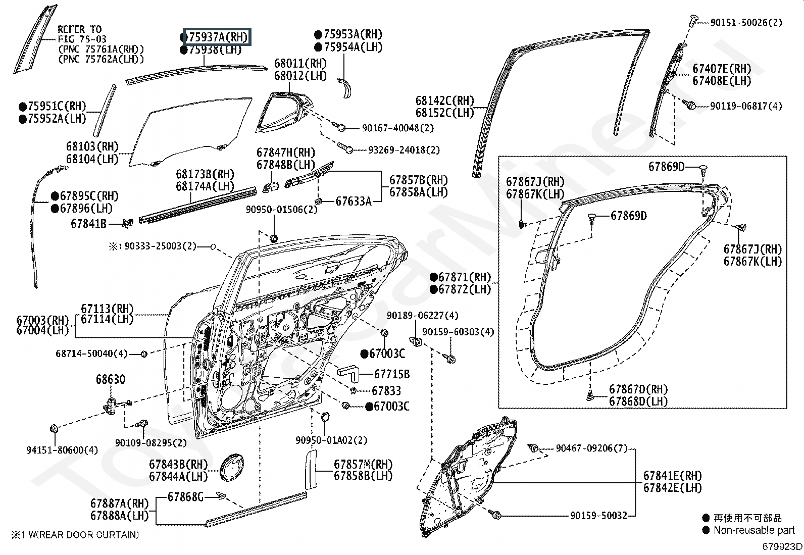 75987-33100, TAPE, BLACK OUT, INNER UPPER RH