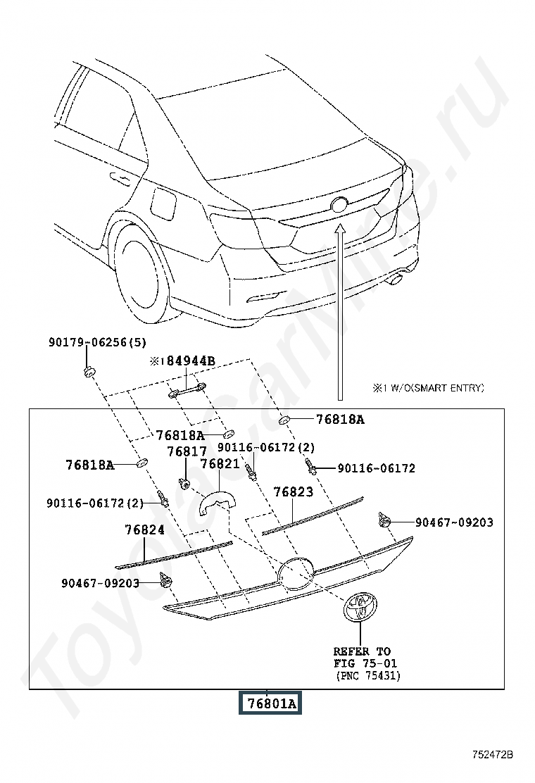 76801-33904, GARNISH SUB-ASSY, LUGGAGE COMPARTMENT DOOR, OUTSIDE