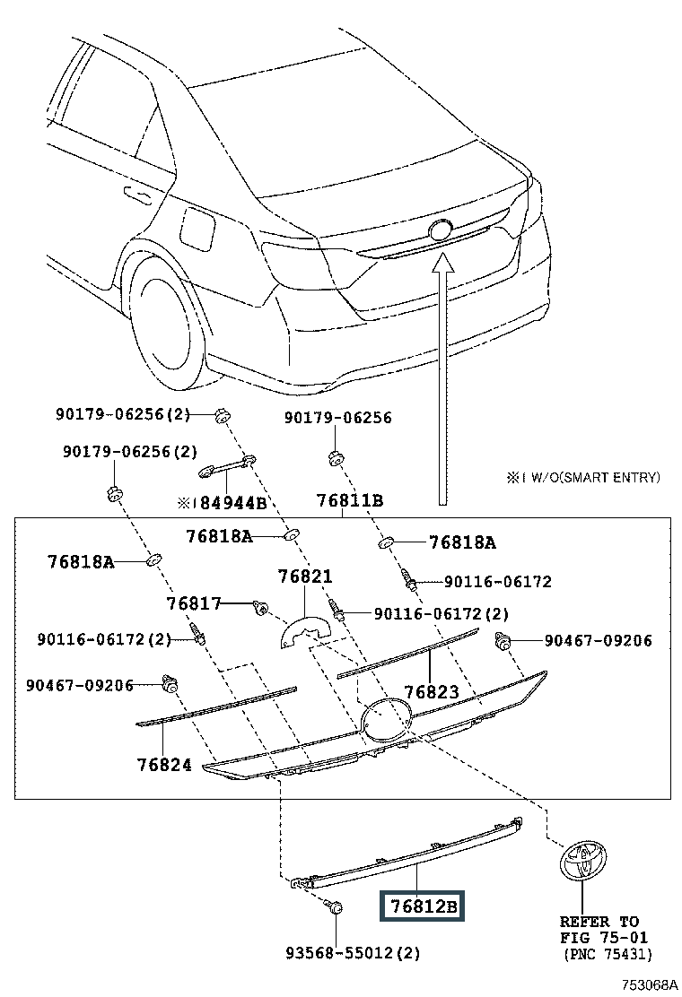 76812-33090, GARNISH, LUGGAGE COMPARTMENT DOOR, OUTSIDE NO.2
