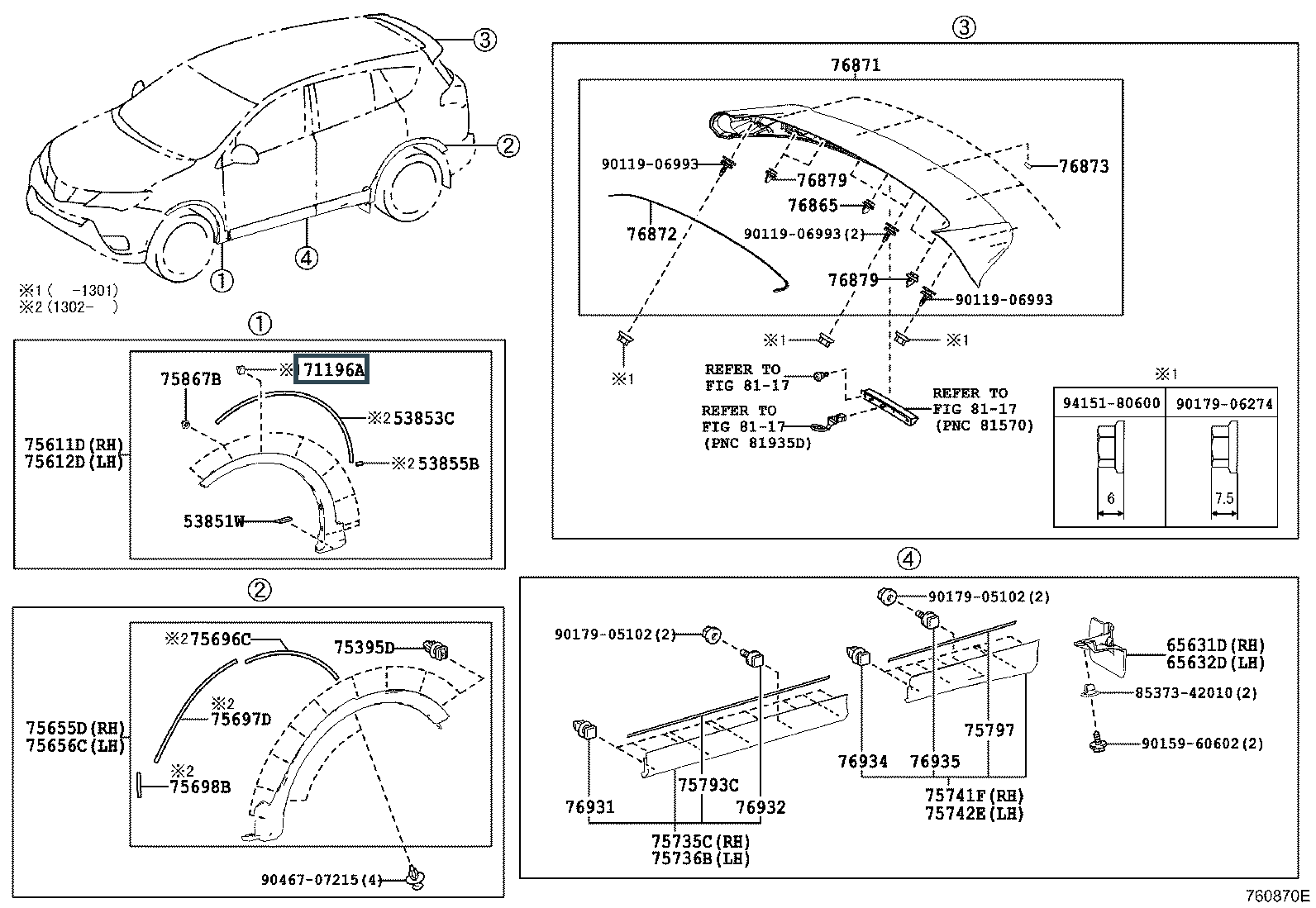 76817-68010, CLIP, BACK DOOR OUTSIDE GARNISH