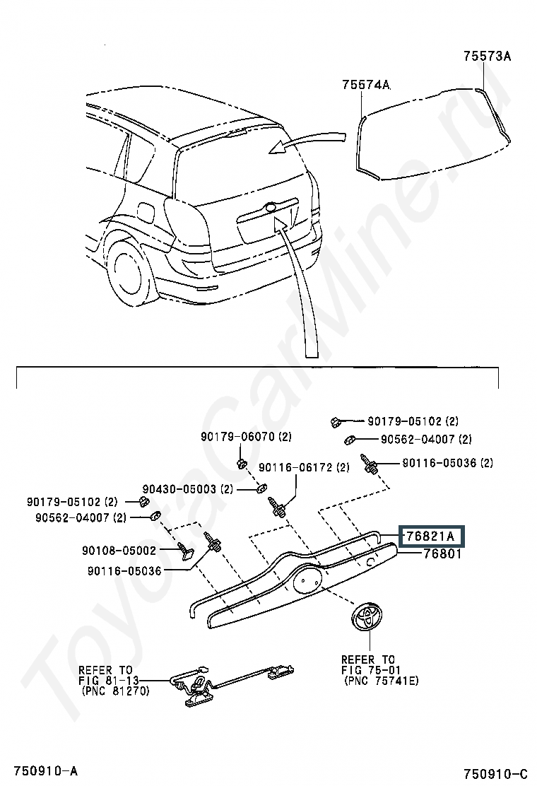 76821-13040, PROTECTOR, LUGGAGE COMPARTMENT DOOR OUTSIDE GARNISH