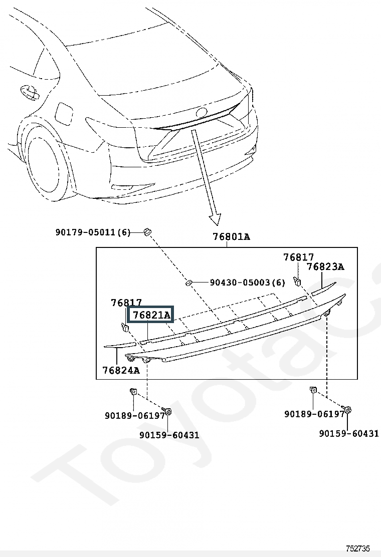 76821-33030, PROTECTOR, LUGGAGE COMPARTMENT DOOR OUTSIDE GARNISH