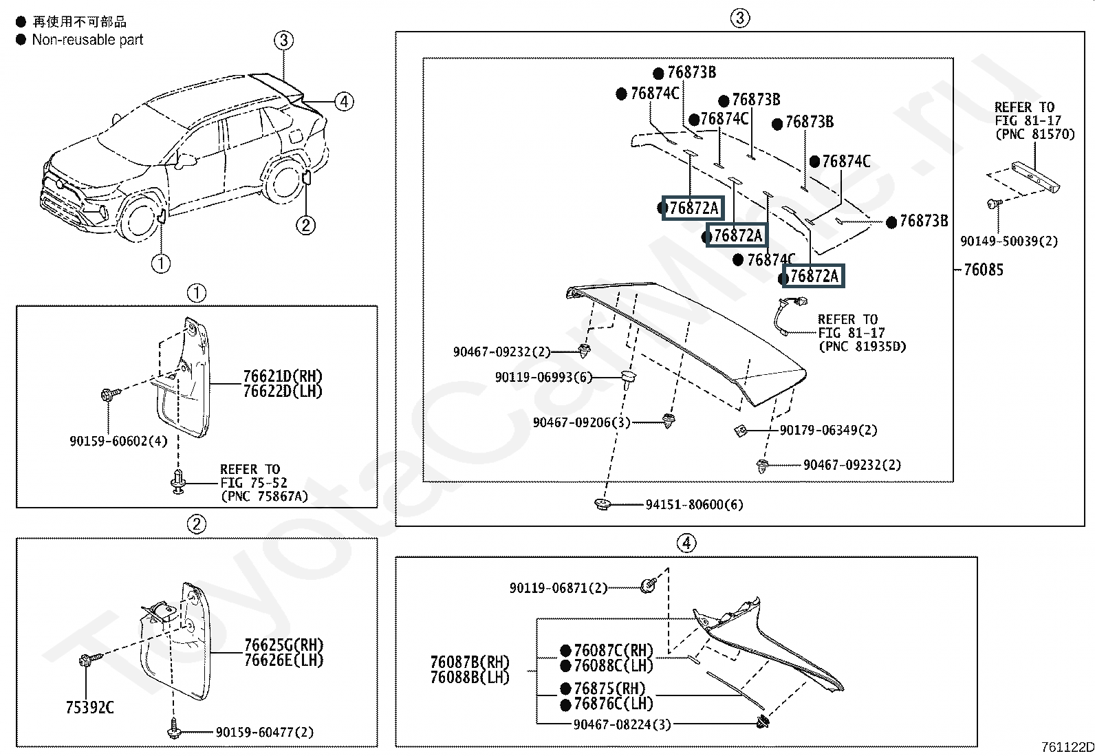 76874-42020, PROTECTOR, REAR SPOILER, NO.1