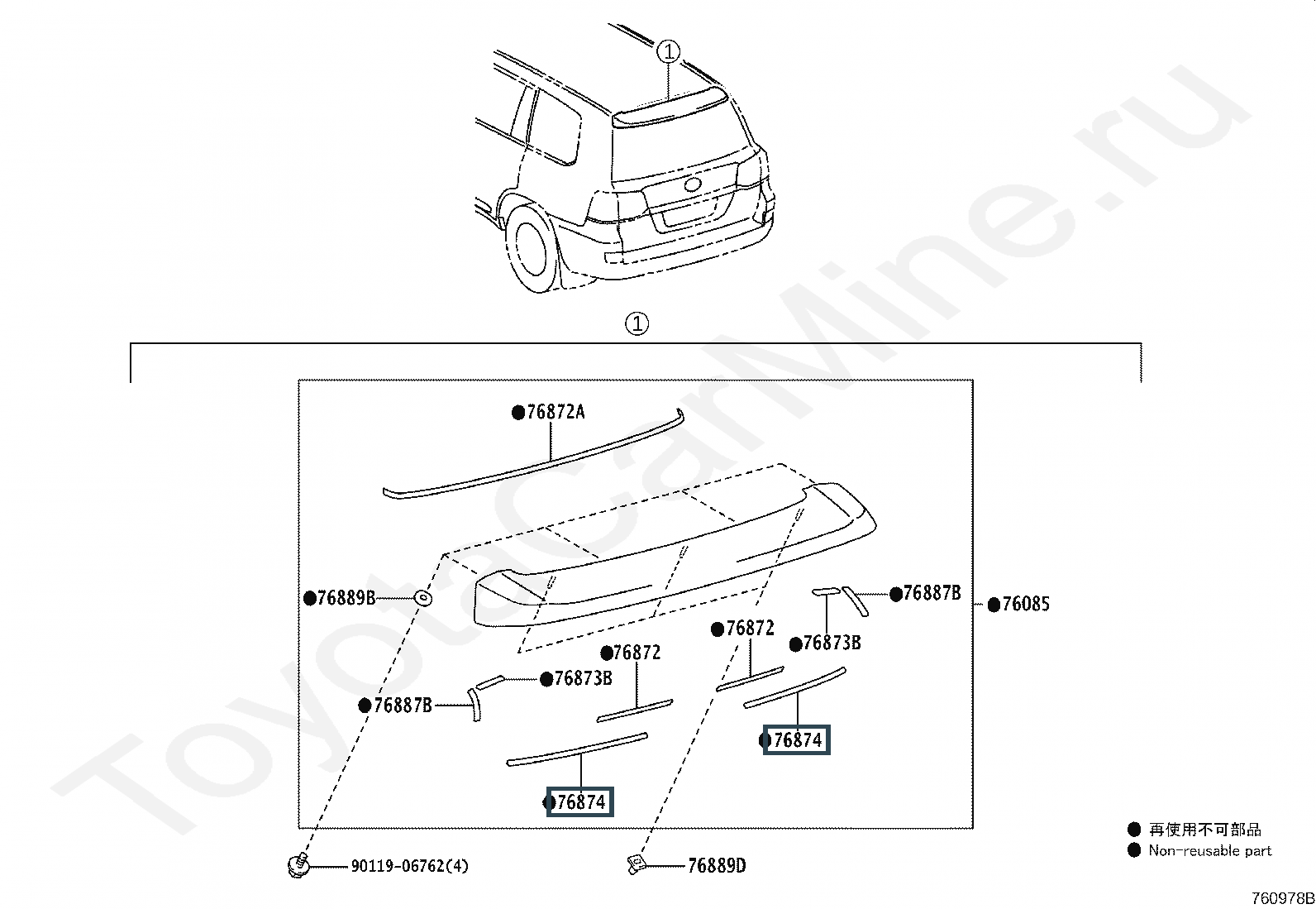 76874-60020, PROTECTOR, REAR SPOILER, NO.3