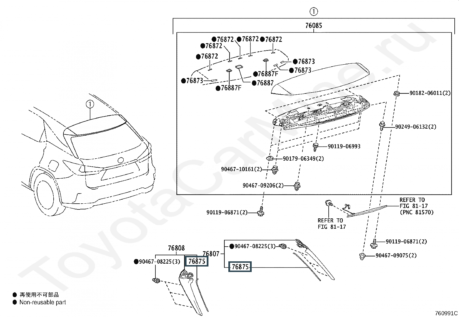 76875-48050, PROTECTOR, REAR SPOILER, NO.4