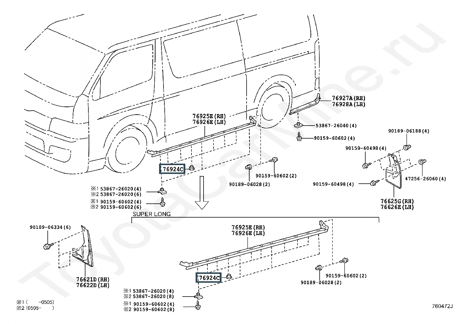 76924-26050, RETAINER, SIDE MUDGUARD, NO.2