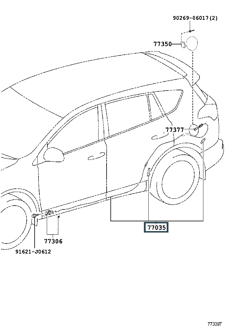 77035-42171, CABLE SUB-ASSY, FUEL LID LOCK CONTROL