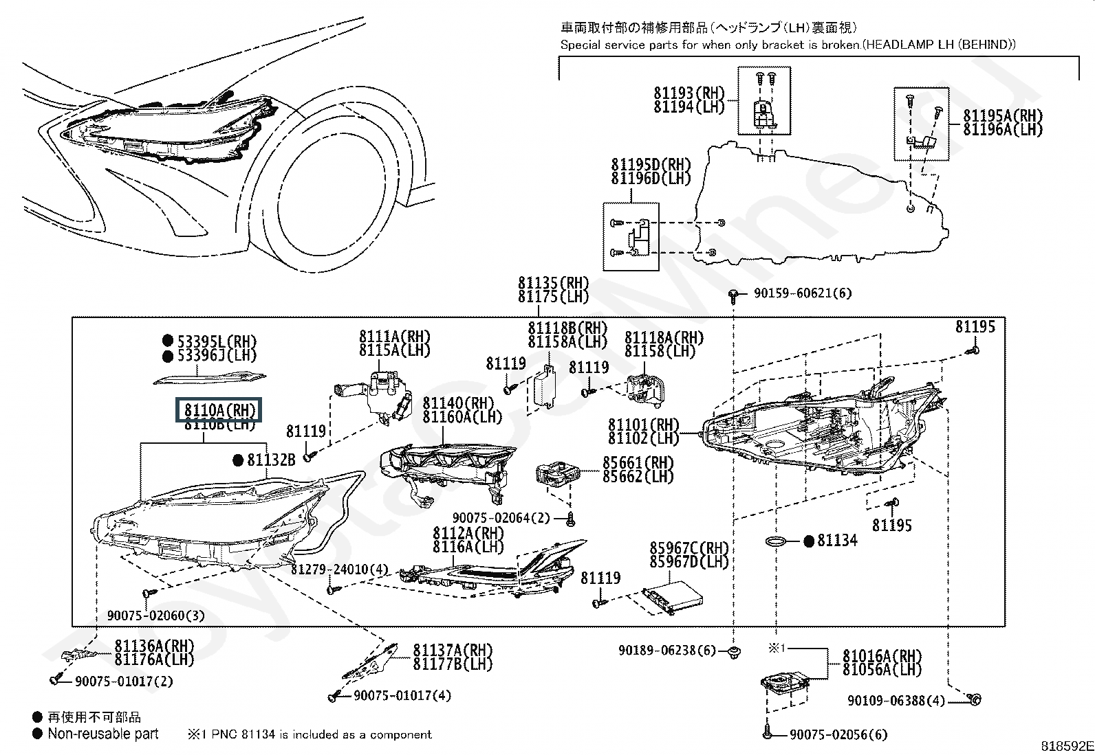 8110A-33F11, LENS SUB-ASSY, HEADLAMP, RH