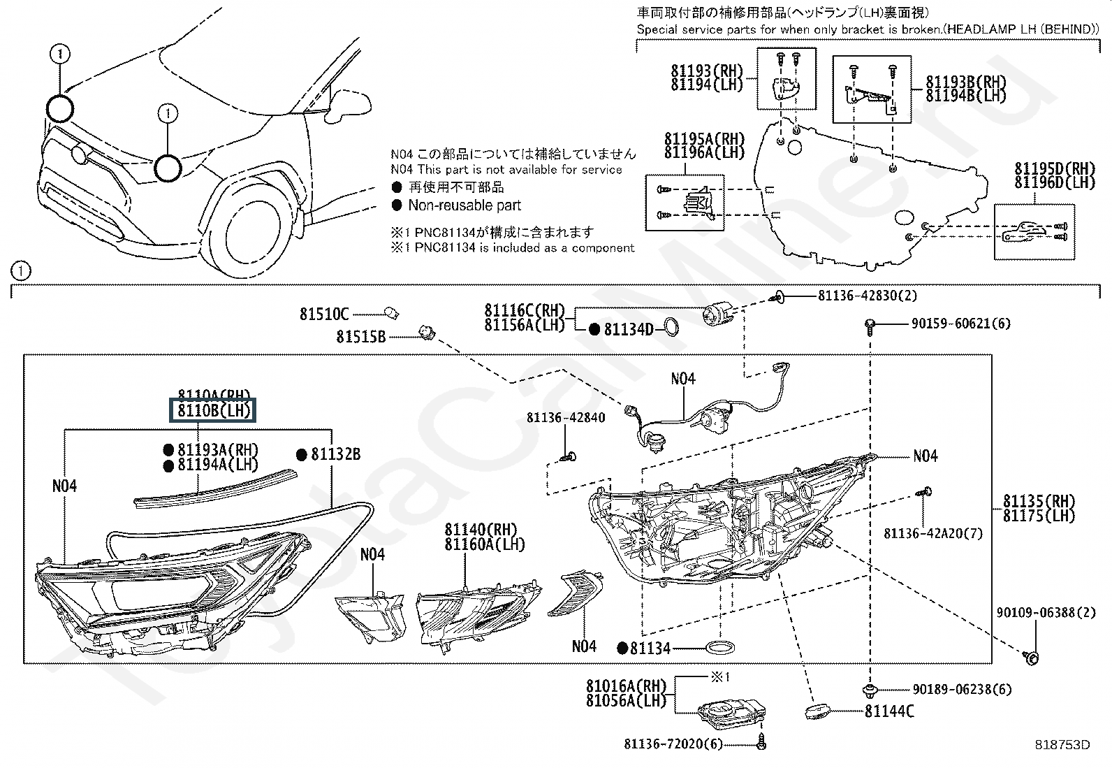 8110B-42840, LENS SUB-ASSY, HEADLAMP, LH