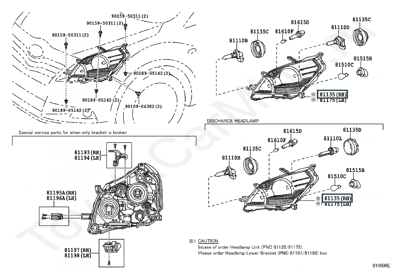 Название по каталогу: UNIT ASSY, HEADLAMP, RH