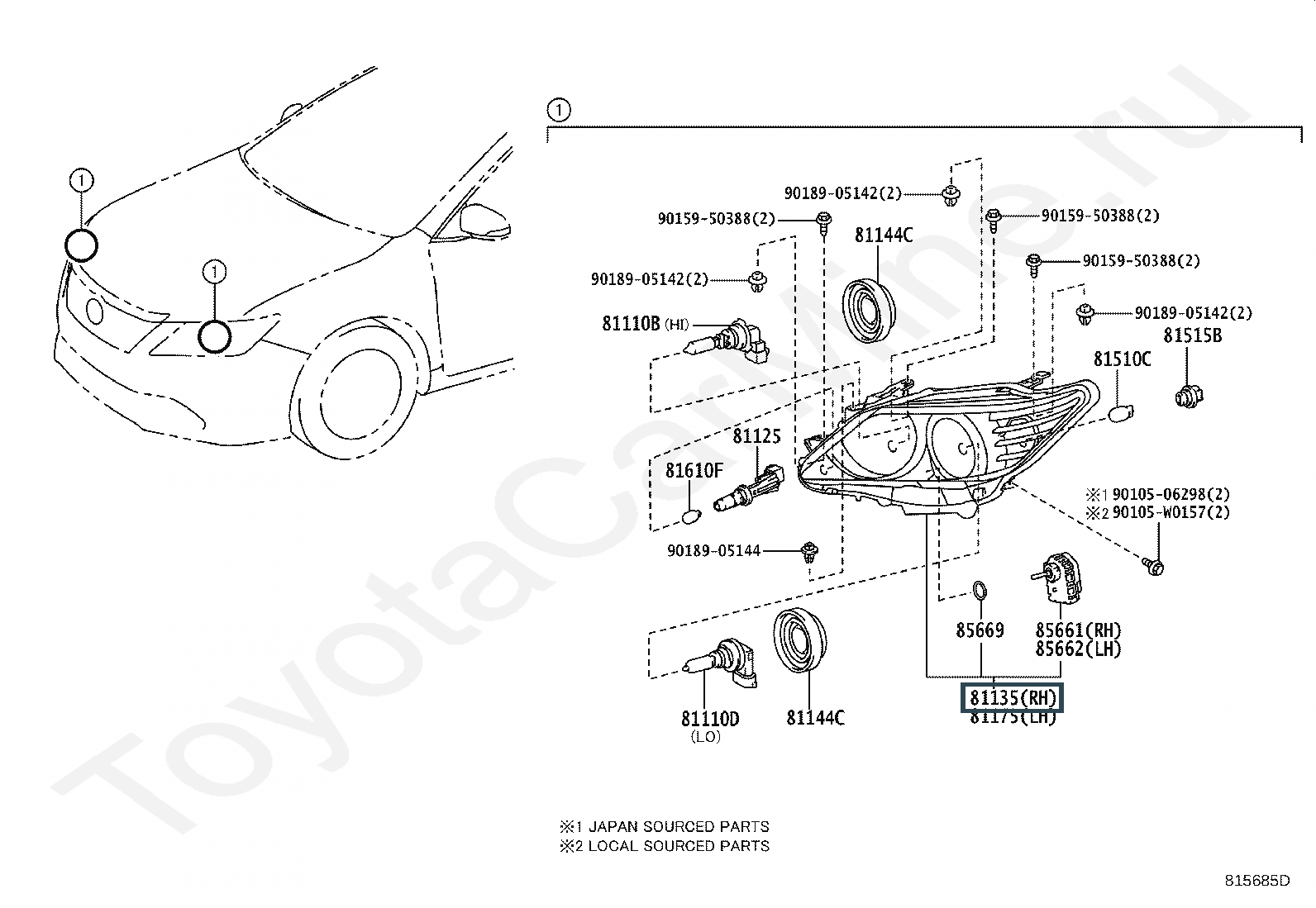 Название по каталогу: UNIT ASSY, HEADLAMP, RH