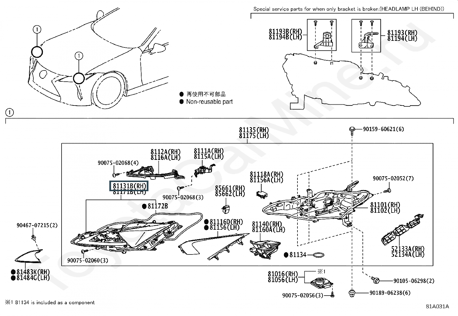 81131-11030, HEAD LAMP LENS, RH