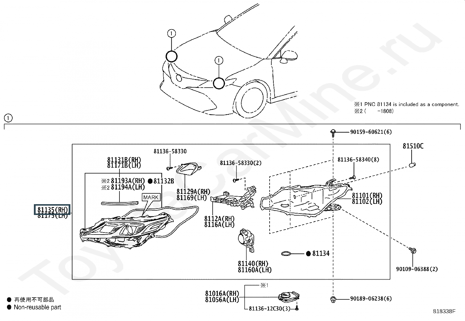 Название по каталогу: UNIT ASSY, HEADLAMP, RH